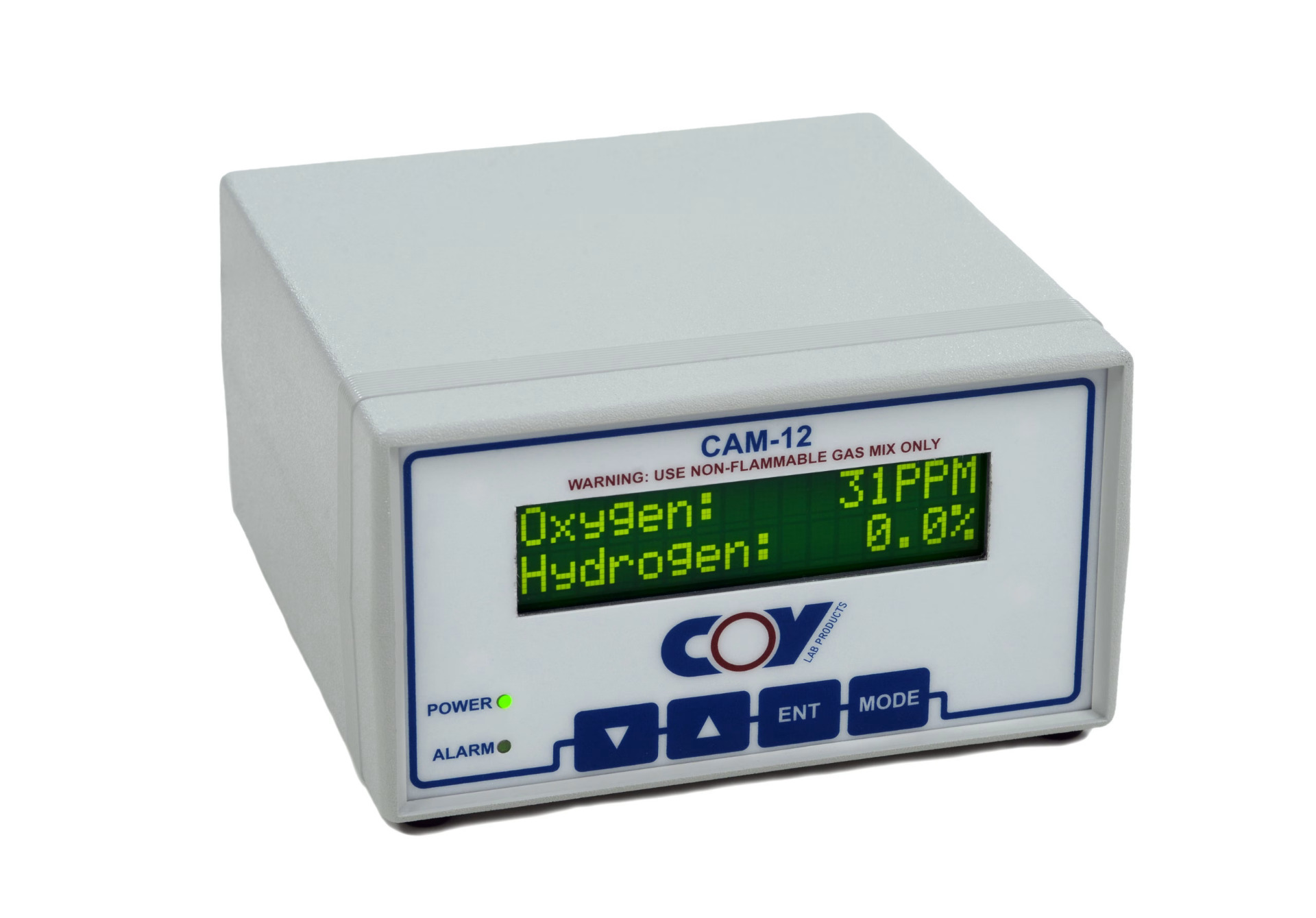 The Coy Anaerobic Monitor (CAM-12) is the only analyzer that offers both O2 (PPM) and H2 (%) monitoring in one unit for the same price as most conventional Oxygen monitors.