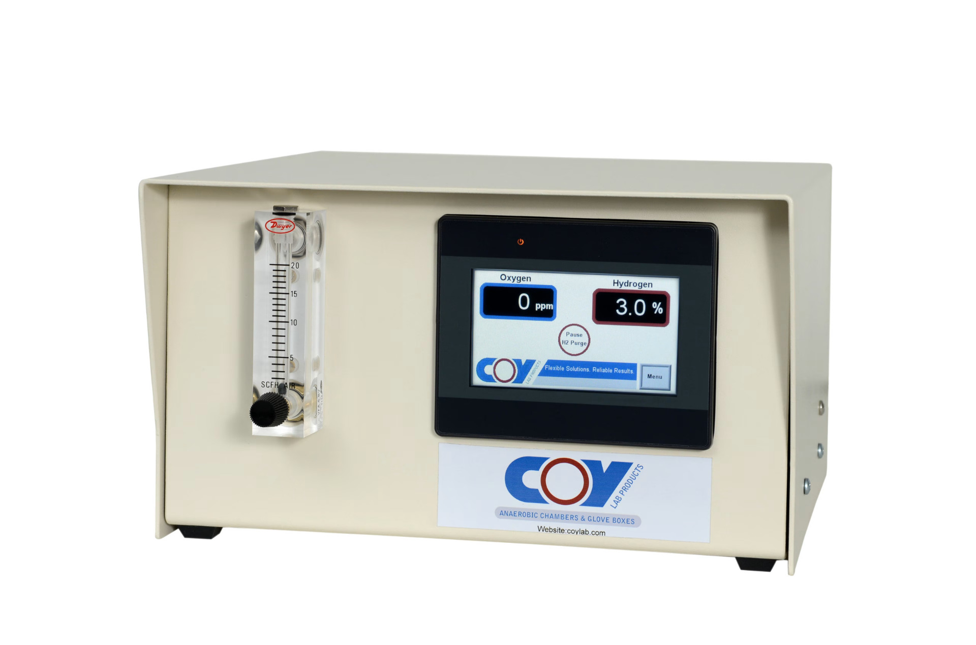 Coy Anaerobic Chambers eliminate oxygen to 0-5 parts per million (ppm) using a hydrogen gas mix (5% or less) reacting with a palladium catalyst to remove oxygen by forming a water molecule. A vacuum airlock is used to reduce oxygen levels prior to transfer of samples and tools in and out of the glove box. Access ports allow sample manipulation without ever exposing your samples to ambient conditions.